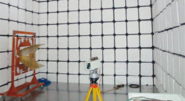 微波暗室、吸波室、电波暗室。当电磁波入射到墙面、天棚、地面时,绝大部分电磁波被吸收,而透射、反射极少。微波也有光的某些特性,借助光学暗室的含义,故取名为微波暗室。 微波暗室是SA作和金属屏蔽体组建的特殊房间,它提供人为空旷的“自由空间”条件。在暗室内做天线、雷达等无线通讯产品和电子产品测试可以免受杂波干扰,提高被测设备的测试精度和效率。随着电子技术的日益发展,微波暗室被更多的人了解和应用。 频率范围 :30MHz~18GHz 吸波材料反射损耗 : 30MHz~18GHz≥15dB (吸波材料采用复合吸波材料,即锥形含碳海绵吸波材料粘贴在铁氧体上)