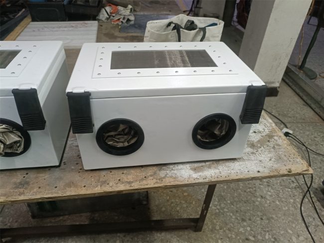 PS-PB432-G屏蔽箱是用于适用于无线通讯测试、 EMI 测试、 耦合测试、RF 功能测试一款带有手套的非常特殊的测试屏蔽箱. 带有一个可视观察窗,用于在射频测试过程中,需要满足在测试过程中需要用手来操作产品的测试,通过可窗视观察,可以通过用手来移动操作被测产品,而又满足信号屏蔽的需求,非常方便适用. 技术指标: 工作频率 Working frequency(GHz) 0.8~6GHz 屏蔽效果 Shielding effect ≥80dB @2.4GHz ≥80dB @5.8GHz 接口类型 Interface Type USB3.0 x 4, SMA – SMA x 4,N – N x 2 ACx 1, 可视窗 x 1, 手套 x 2 工作温度 working temperature(°C) 常温工作 内尺寸 Inside Dimensions(mm) 外观尺寸 Dimensions(mm) 457 x 305…